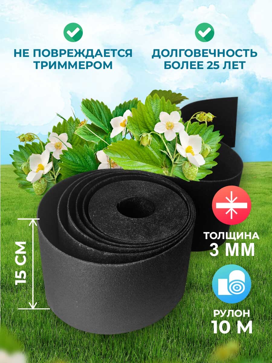 Бордюрная лента высотой 15 см подходит для формирования тропинок, клумб, миксбордеров