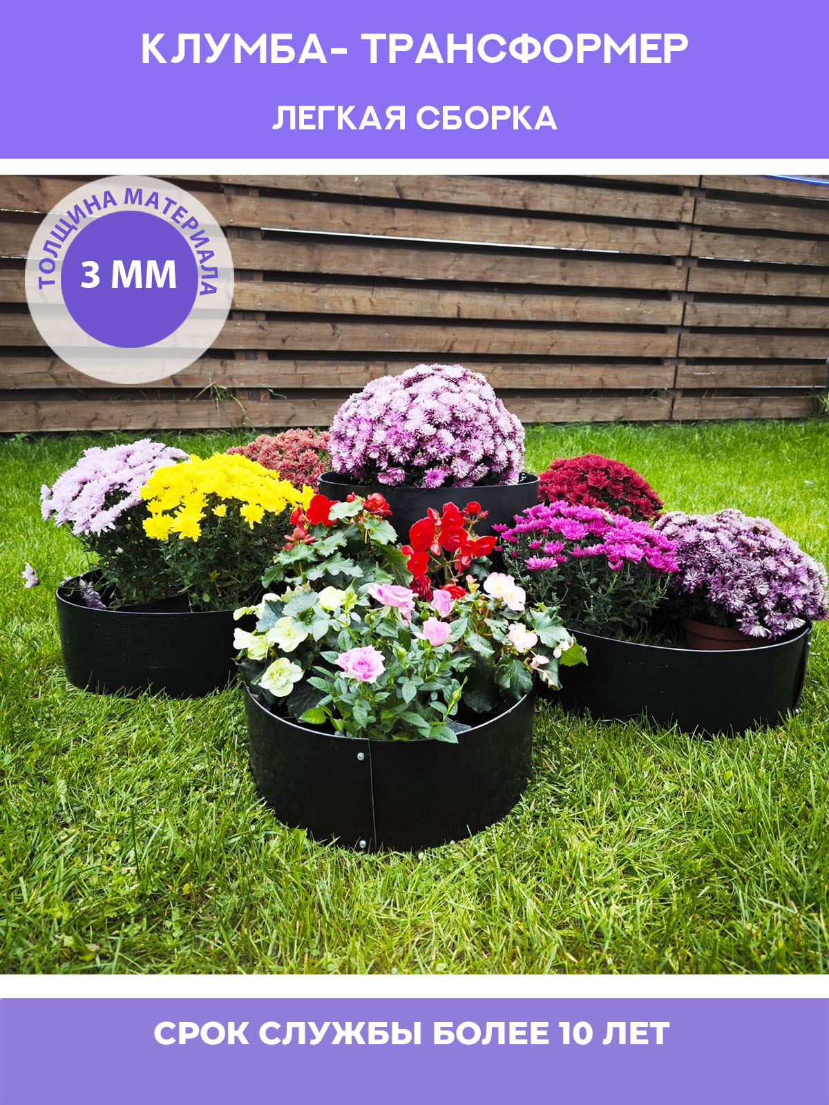 Клумбы изготовлена из ПВХ толщиной 3 мм - крепкая, прочная, отлично держит форму и не рубится леской триммера газонокосилки.